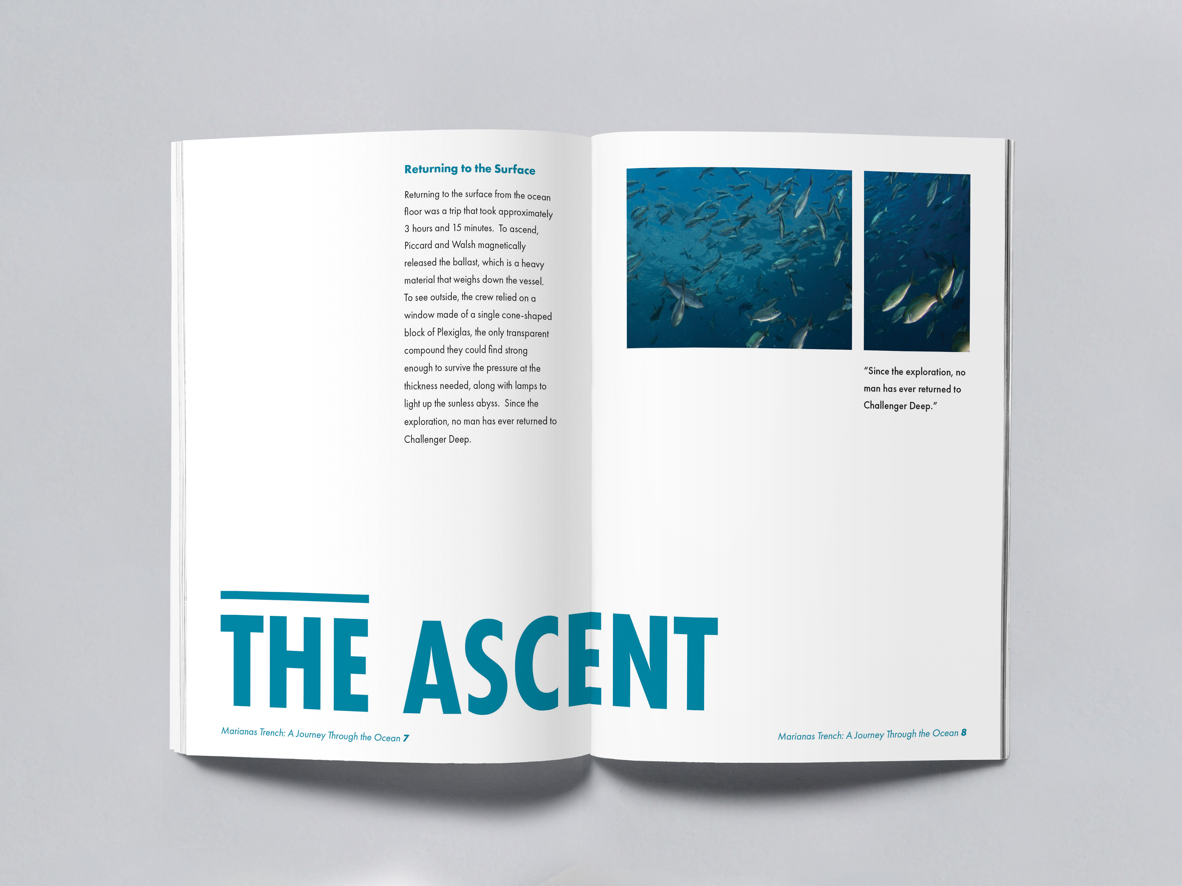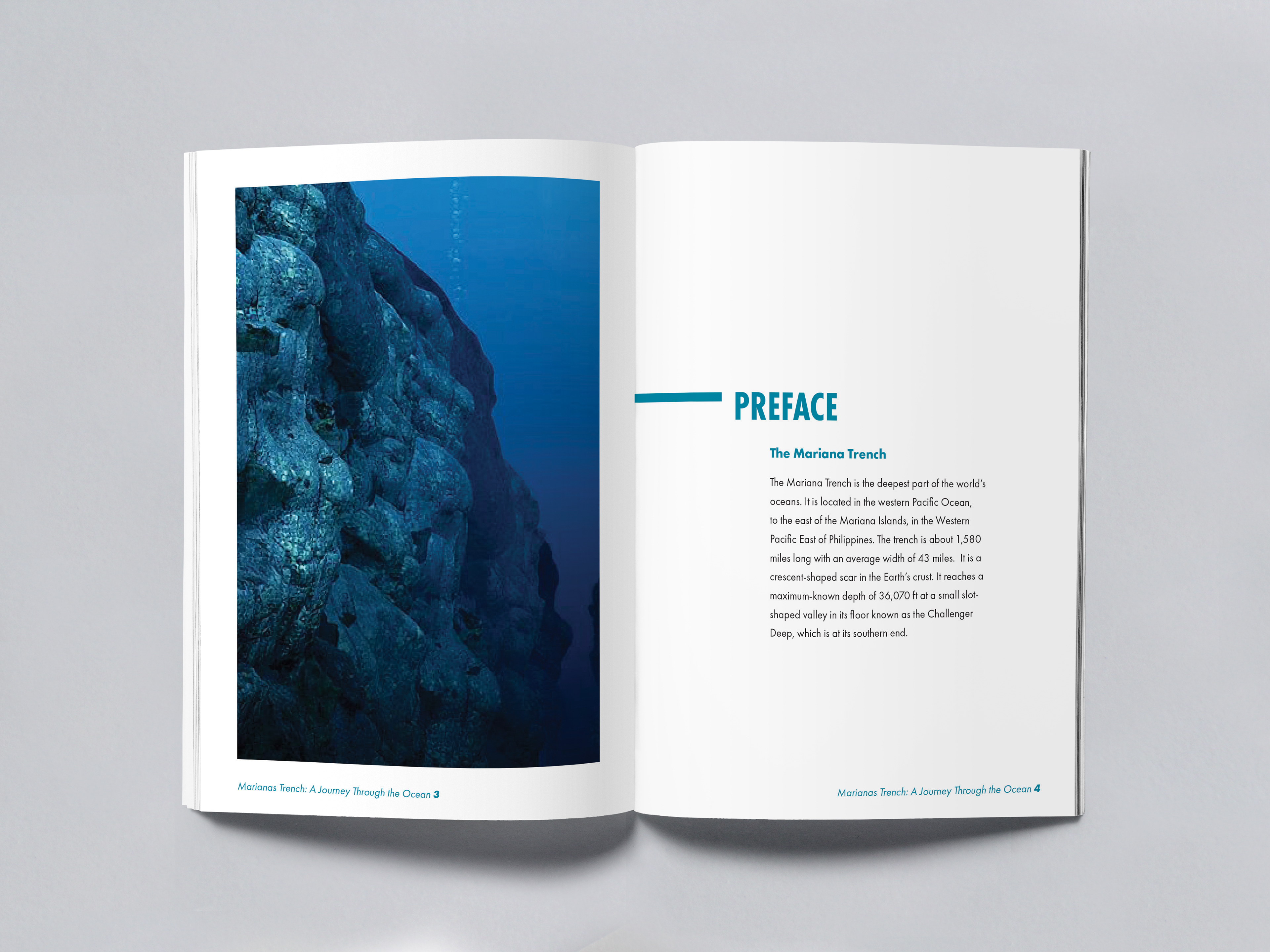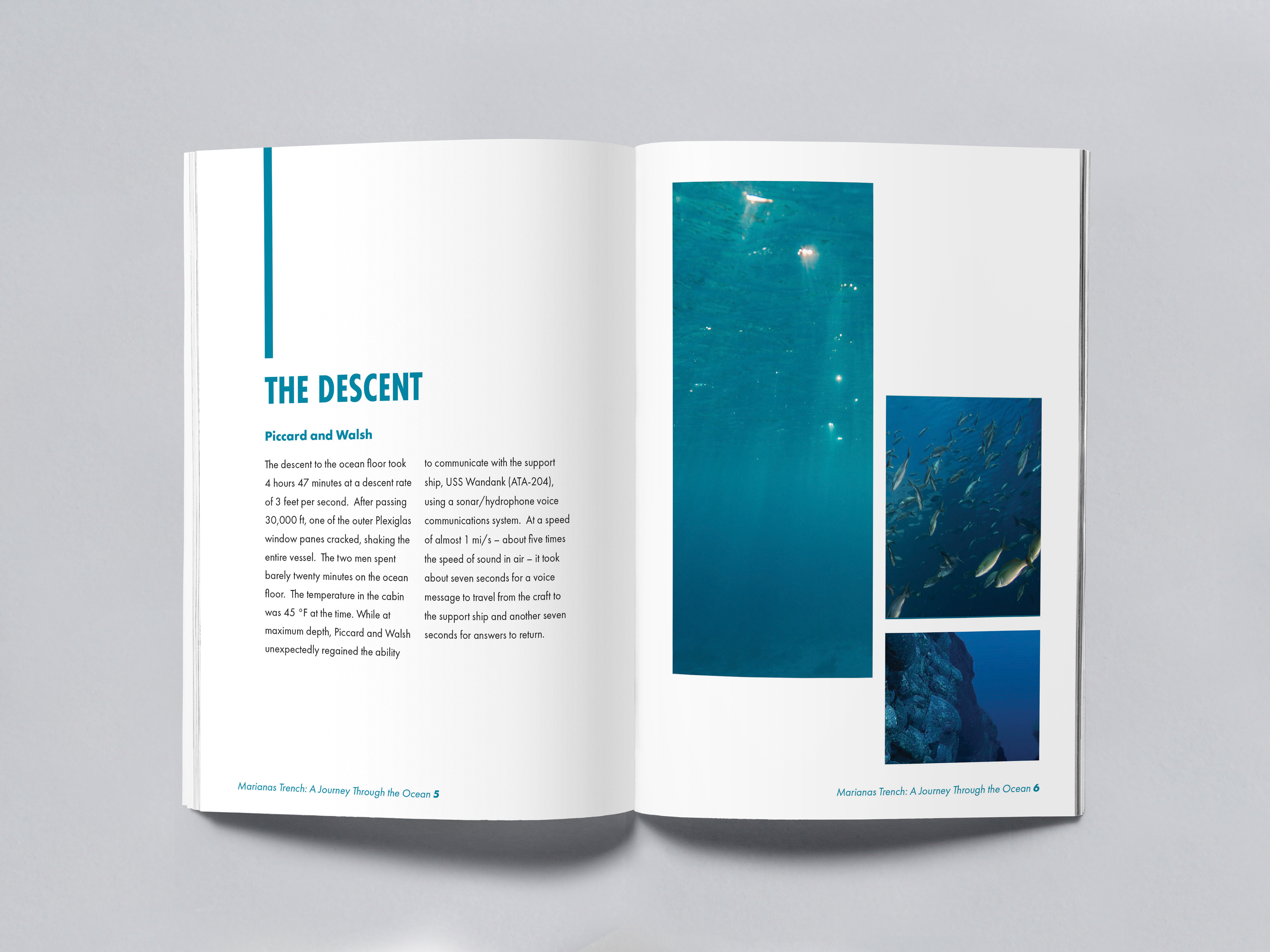 A small book I designed detailing the journey of Don Walsh and Jacques Piccard through the Mariana Trench.